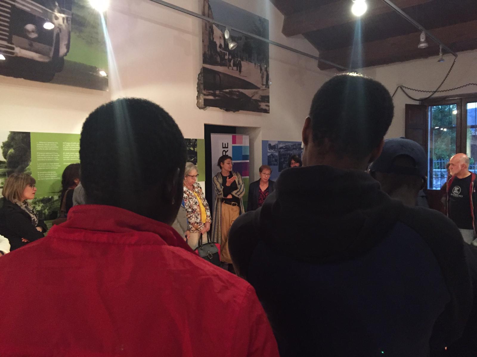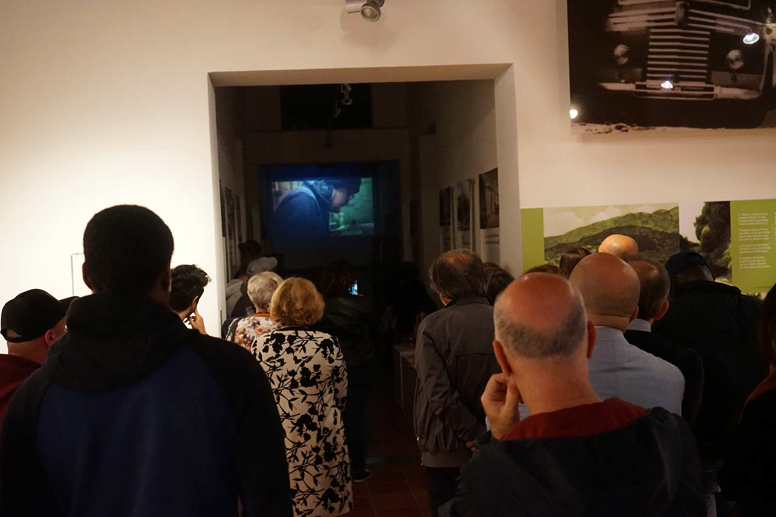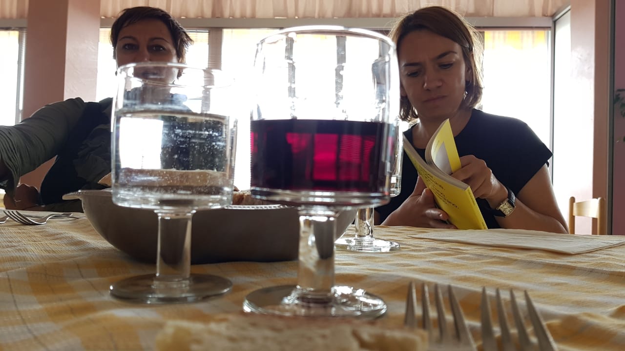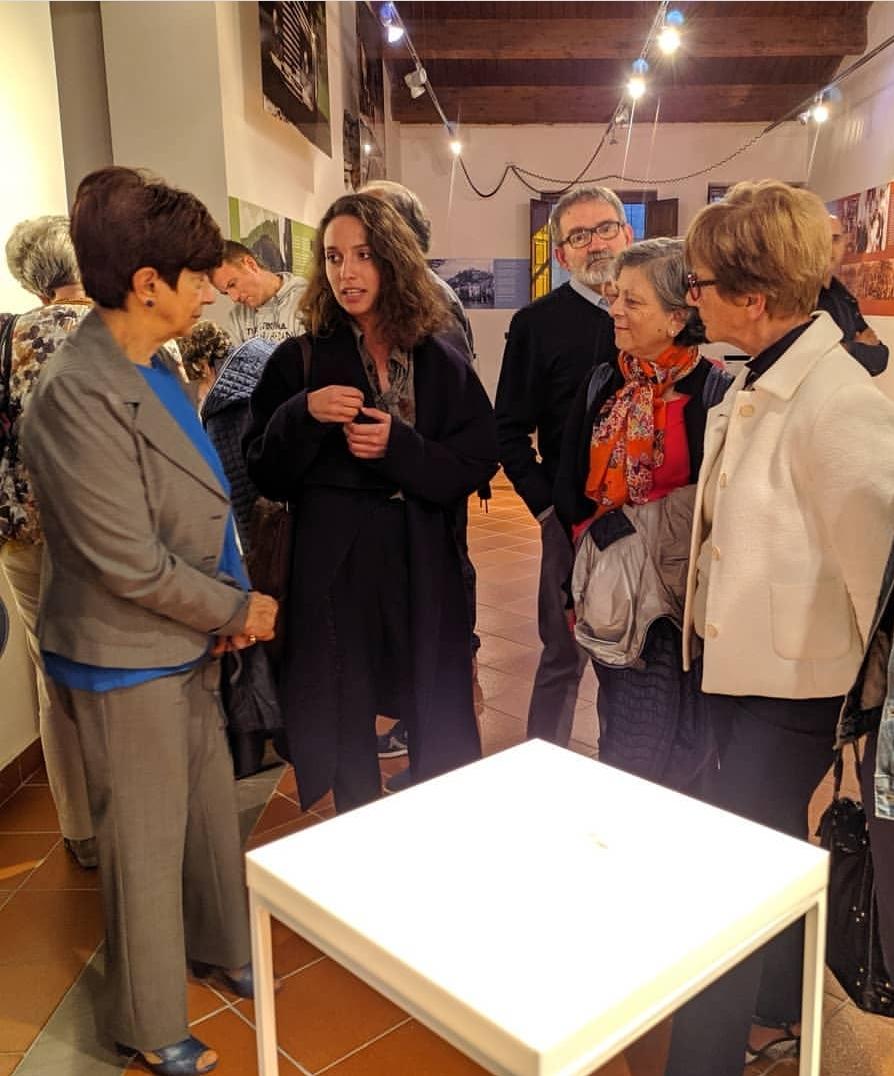 Bora sarebbe arrivata puntuale al museo, come da accordi, ma stamattina Luca, che doveva andare a prenderla, e che di solito arriva in orario, ha pensato di lasciarla in febbrile attesa ancora per un po’ e si è presentato in leggero ritardo. Ma appena arrivati, neppure il tempo di un caffè, e già sono all’opera, sul terrazzo del museo, per la seconda mano di pitturazione. Il risultato, alla fine, sarà molto gradevole. Di lì a poco ci raggiunge anche il resto del gruppo per gli ultimi ritocchi, qualche foto, la regolazione finale del video. Dovrebbe essere tutto a posto. Manca solo la piantina del museo, con l’indicazione della posizione esatta delle opere, da stampare e consegnare ai visitatori, ma a questo penserà Luca tra un po’. Oggi, per pranzo, siamo da Daniela. L’abbondante antipasto basterebbe ma la golosità spinge ad andare un po’ oltre: arriviamo fino all’assaggio di pasta, che assaggio non è, e poi direttamente al caffè. Ci lasciamo per un’oretta circa, il tempo di riassestarci. Alle 18.00, puntuali, arrivano i primi visitatori e il piacere è grande nel vedere, insieme agli altri, proprio lui, Quirino. E subito dopo Essa e Mustapha. Due delle opere esposte parlano di loro. Nei giorni precedenti li avevamo sentiti e invitati, in virtù dell’affetto e della stima che ci lega a queste persone, ma non eravamo sicuri della loro presenza, e invece eccoli qui. E pian piano vediamo arrivare tante persone che seguono con costanza le attività dell’associazione; non solo persone di Latronico, ma anche di Lauria, Francavilla sul Sinni, Cersosimo, Viggianello, San Costantino Albanese e molti altri paesi dell’area, oltre agli immancabili Agnese e Antonio partiti da Rionero in Vulture. Qualche parola da parte di Katia, Claudia e Rosita per illustrare agli ospiti i lavori e il senso della residenza e della mostra, poi, rievocando (ma solo nel nome) l’antica arte degli àuguri, si brinda tutti insieme affinché il buon auspicio accompagni le opere e gli artisti “Del tempo fossile”.